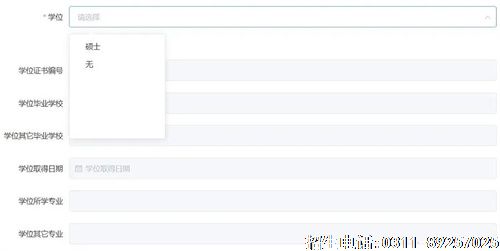 如无学位,请在“学位”中选择“无”。