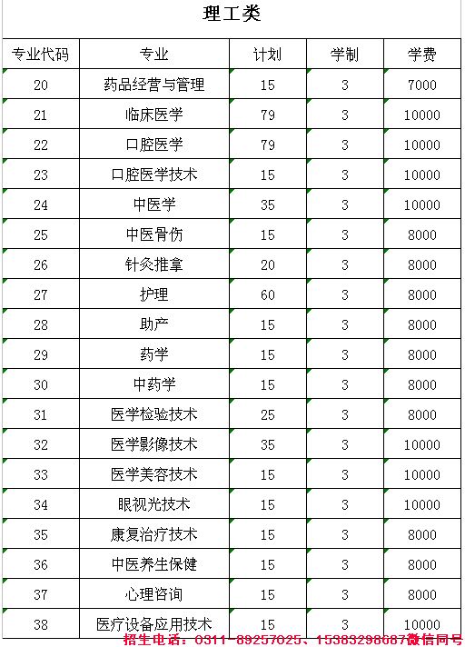石家庄医学高等专科学校理工填报志愿招生专业代码